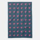Cute Rose Heart Motif Valentine`s Day serviette de cuisine. Coeurs roses dessinés à la main avec des points sur arrière - plan bleu foncé.