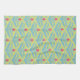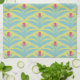 Motif moderne et audacieux avec tulipes simples illustrées d'origine, bleu et vert printanier avec détail fleur magenta.