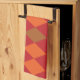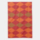 Serviette de cuisine Motif orange vert À damiers diamant conçue par Nisha Prabhu. Motif Diamond À damiers vert orange sur Arrière - plan rouge. La serviette de cuisine motif en diamant vert orange à damiers est un ajout pratique et élégant à votre cuisine. Le motif en diamant à damiers aux couleurs vives orange et vert ajoute une pop de couleur et un intérêt visuel à votre décor de cuisine. Que ce soit pour sécher la vaisselle, essuyer les surfaces ou ajouter une touche décorative à votre cuisine, la serviette de cuisine motif en diamant vert orange à damiers est à la fois fonctionnelle et esthétique.