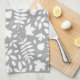 Linge De Cuisine Motif Feuille tombé blanc sur gris