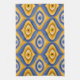 Serviette de cuisine psychédélique aux couleurs bleu indigo motif bizarre et jaune nid d'abeille. Cette motif éclectique et ludique ressemble à un style rétro moderne du milieu du siècle grâce à ses formes géométriques.