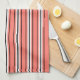 Serviette de cuisine dans un motif moderne rayé du milieu du siècle dans les tons rose corail profond, accentué de noir et blanc