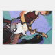 La couleur Abstraite bloque garçon et sa guitare. En bleu, vert mer et multicolore.