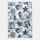 Cette serviette de cuisine dispose d'un motif d'été amusant d'éléments nautiques, y compris l'ancre, la mouette, l'étoile de mer et bien d'autres, le tout en bleu marine avec des tourbillons et des accents bleu aqua ondulé. Recherchez ID839 et ID840 pour voir d'autres produits avec cette conception et des options de couleur supplémentaires.