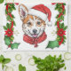 Cute corgi dans un chapeau de Père Noël avec verdure de Noël, sainte, arcs et poinsettias. Rouge et Vert.