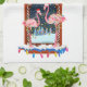 Flamants roses serviette de cuisine de Noël. Design propose deux flamants roses portant des chapeaux santa dans une scène de vacances avec des lumières de Noël aussi ! Serviette mignonne pour ceux qui vivent dans un endroit tropical avec des flamants roses ou ceux qui aiment les flamants roses !