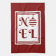 Serviette de thé de la cuisine rouge avec un imprimé de Noël rouge et blanc amusant NOEL texte et un bauble de Noël rayé. Accessoires de cuisine de Noël assortis et vaisselle disponibles.