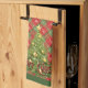 Serviette de cuisine de Noël Rouge, Vert, Plaid or et un sapin de Noël étincelant et mots, "Joyeux Noël".