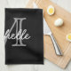 Linge De Cuisine Noir moderne Blanc Personnalisé Nom Monogramme