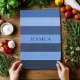 Motif moderne Bleu rayé Nom serviette de cuisine.