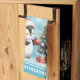 Créez une serviette de cuisine de Noël personnalisée unique qui comprend un manchot mignon décorant un arbre de Noël conçu sur un arrière - plan bleu neigeux avec d'élégants flocons de neige. Utilisez le modèle pour taper votre nom de famille ou un dicton pour le décor unique de la cuisine pour les vacances.