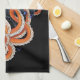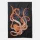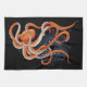 Une pieuvre orange sur fond de noir. Tentes d'octopus dans et autour des bulles et mandala bleu