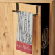 Cette serviette de cuisine moderne présente des bouleaux dessinés à la main avec des oiseaux cardinaux rouges perchés sur des branches à l'encre noire, avec ombrage fait en croix, contre un élégant arrière - plan vert sauge très clair. Personnalisez avec vous votre salutation de vacances préférée, un nom ou un nom de famille.