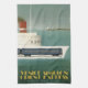 Reproduction d'une affiche de voyage d'Express d'Orient. Décrit une idée pour un ferry de train, qui n'a jamais été réalisée. Magnifique style Art Déco, en aqua, bleu, blanc, jaune et cheminée rouge sur le ferry. Cette serviette de cuisine fera un objet de décoration utile pour votre cave à vin, cuisine ou bar maison!