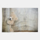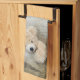Serviette de cuisine avec une photo de chéri d'un mignon ours en peluche, debout près d'un mur en bois rustique / fond.