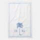 Cette serviette de cuisine amusante monogrammée présente un palmier côtier en bleu et blanc classique. Personnalisez le monogramme avec votre choix d'initiales.