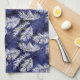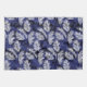 Feuilles de palmiers blancs sur un arrière - plan bleu indigo, recouverts de frondes de palmiers plus bleues.