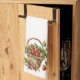 Un cadeau pour maman, une serviette de cuisine avec une corbeille de fraises fraîches, le tout sur un arrière - plan blanc immaculé.