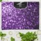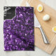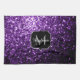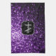 Personnalisez la serviette de cuisine à thé à la main fausse brillante avec votre initiale et votre nom. De belles parties scintillant violettes brillantes et girly glamour scintillent. Photo de flammes violettes pas de parties scintillant réelle !