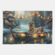 Jetez un coup d'oeil à la magie de la saison des Fêtes avec cette illustration magnifiquement détaillée, montrant un chien fier assis dans un bateau à la décoration festive, glissant à travers un lac serein de Noël. Les lumières scintillantes des pins voisins se reflètent dans l'eau, projetant une lumière chaude et festive qui renforce l'ambiance cosy. Des ornements pendent des côtés du bateau, tandis que des lanternes brillantes éclairent le chemin, créant une scène qui capture l'essence véritable de la chaleur et de la joie de Noël. Cette oeuvre nostalgique apporte une touche de magie de vacances à tout espace, parfait pour ceux qui chérissent l'esprit de la saison.