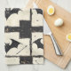 Dénim blanc cassé Halloween serviette de cuisine patchwork avec chauves-souris cousues en vol. Une texture détendue et grunge avec des points audacieux crée une esthétique gothique rustique. Idéal pour les amateurs de chauve-souris, décoration gothique ou cadeaux Halloween uniques.