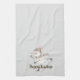 Adorable serviette de cuisine de vacances caractéristiques main dessiné whimsical patinage de glace snowman sur gris arrière - plan