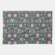 Patterned textiles with pink teapots, teacups, and green leaves on a dark background, shown in horizontal and vertical orientations. Cozy and whimsical.