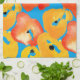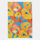 Aquarelle design d'art original de pavots rouges et oranges. Fleurs vives et colorées sur arrière - plan bleu.