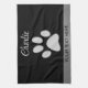 Linge De Cuisine Paw Chien Argent sur arrière - plan noir