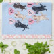 Labrador retriever mignon et lunatique peignant la conception. Les chiens adorables de Labrador marchent avec les signes en forme de coeur. Labrador et chocolat noirs Labrador et Labrador jaune tous sont inclus. Grands cadeaux d'amusement pour les amoureux de les chiens qui aiment Labradors ! "Fève Apetie !" le message est imprimé au chaque coeur. Idée gentille de cadeau pour la cuisine. Motif rose et blanc élégant de damassé.