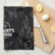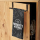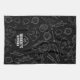 Modern black kitchen towel with white hand-drawn utensil icons and a bold “Your Name’s Kitchen” mark. Personalize the name for a stylish, chef-worthy accent or gift for home cooks.