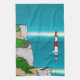 Illustration du phare de Beachy Head, vue depuis le sommet de la falaise de la tête de Beachy. Un design coloré avec le phare reflétant dans les eaux calmes de la Manche.