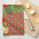 Plaid de Noël avec des bébés anges dansants suspendus à une serviette de cuisine de vacances avec fleur de poinsettia.