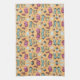 Playful kitchen-themed pattern featuring aprons, oven mitts, rolling pins, and utensils on a beige background. Cheerful and vibrant design.