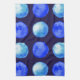 Serviette de cuisine bleue avec un motif amusant de grands points aquarelle aux couleurs bleu cerulean et indigo.