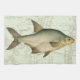 Cette impression artistique illustre une peinture détaillée d'un poisson d'eau douce. L'arrière - plan est une carte vintage de couleur aquatique claire. Ce design s'adapterait parfaitement à tout produit de votre collection de pêche.