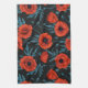 Linge De Cuisine Poppies, rouge et bleu sur noir