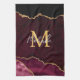 Cette serviette de cuisine est ornée d'un élégant et glamour arrière - plan en marbre d'agate avec des détails de gemme de géode et des accents de parties scintillant faux or. Le monogramme combine écriture manuscrite et polices sans serif modernes pour un look élégant et sophistiqué. Cela fera le cadeau idéal car il peut être customisé avec un nom et une initiale. Les teintes rouges profondes le rendent parfait pour l'automne et l'hiver.