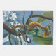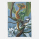 Un petit dragon vert dans un arbre en hiver, en essayant de se faire des amis avec une poule