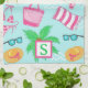 Personnalisez cette serviette de cuisine preppy scène de plage avec une initiale et offrez-la en cadeau ou achetez-en une pour vous-même pour votre prochaine fête. Cette scène de plage avec sacs de plage, bikinis, palmiers, lunettes de soleil, sacs de plage et casquettes de plage peut être trouvé sur d'autres produits dans mon magasin, PageCreativeDesigns.