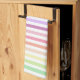 Cette serviette de cuisine aux rayures pastel arc-en-ciel est parfaite pour Pâques ou Printemps.