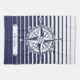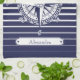 Une conception nautique avec un rose de boussole fleuri sur les rayures bleues et blanches et un étiquette avec le texte personnalisable.