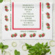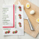 Cute Strawberry à thème Recette de serviette de cuisine design avec l'image de fraises le long d'une bordure rouge. Bordure affiche également votre texte en lettres vertes. Votre recette est présentée comme principale caractéristique du design.