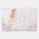 Profitez de ce printemps, mignon, aquarelle, recette de gâteau simple pour la cuisine. Fleurs roses avec un mignon pain de gâteau garni de glaçage et de bleuets. Bordures florales roses sur la droite.
