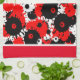 Serviette de cuisine aux taches chaotiques blanc, noir et rouge