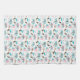 Un motif super mignon avec un thème de camping avec caravanes rétro, tentes, transats, parasols et tables de pique-nique dans les tons bleu turquoise, rose et blanc,