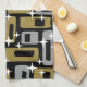 Colorful Retro Mid Century Moderne Motif Abstrait en Gris Noir & Or. Mid-Century moderne (MCM) est un mouvement dans le design d'intérieur, la conception de produits, le design graphique, l'architecture et le développement urbain qui était présent dans le monde entier, mais plus populaire aux États-Unis, au Brésil et en Europe d'environ 1945 à 1970 pendant la période post-guerre des États-Unis. La décoration et l'architecture de style MCM ont connu une résurgence majeure qui a débuté à la fin des années 1990 et se poursuit aujourd'hui.