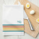 Brighten your kitchen with this Retro Monogrammed Minimalist Stripes Kitchen Towel. Featuring bold blue, turquoise, yellow, orange, and terracotta stripes, it brings a charming blend of retro style and modern simplicity to your space. Personalize it with your initials for a unique finishing touch, perfect for gifting or adding a custom accent to your own kitchen. This towel is both a functional essential and a stylish decor piece.