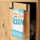 Ride the waves in style with this fun beach-theme kitchen towel that features customizable text that says, “Life’s a Beach – Make Some Waves.” With a retro-inspired design of a rising sun, ocean waves, and playful star accents, this colorful design is perfect for use in a beach cottage or coastal home. Ideal for beach lovers, surf enthusiasts, or anyone who lives for sunny skies and salty air. Personalize it with your own sentiment to create a unique addition to your own kitchen or a housewarming gift for new homeowners.