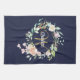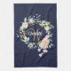 Jolie serviette de cuisine en monogramme, avec un nom de script magnifique avec une initiale en or complaisante qui est encadrée par une délicate guirlande rose florale aquarelle sur un arrière - plan bleu marine. Personnalisez pour créer un cadeau spécial de conservation au trésor! Conçu par Thisisnotme©
